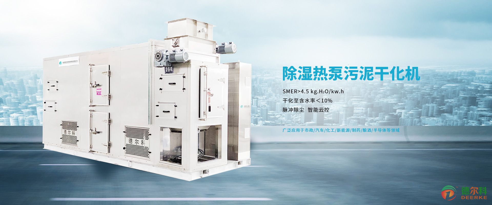 德爾科自主創(chuàng)新研發(fā)設計制造的污泥干化機,利用制冷系統(tǒng)的低溫熱泵除濕原理,將來自干燥室的濕空氣降溫脫濕,同時回收水分凝結的潛熱再次加熱干燥空氣,對網(wǎng)帶上的濕污泥進行脫水干化。設備全密閉式新穎設計,箱體內干燥熱風無熱損,干燥過程中實現(xiàn)能量的循環(huán)利用,實現(xiàn)